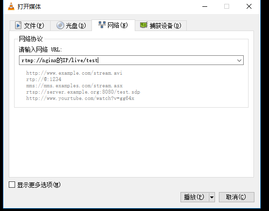 流发布成功之后,使用VLC media player测试读取RTMP数据流正常播放视频,就可以了.