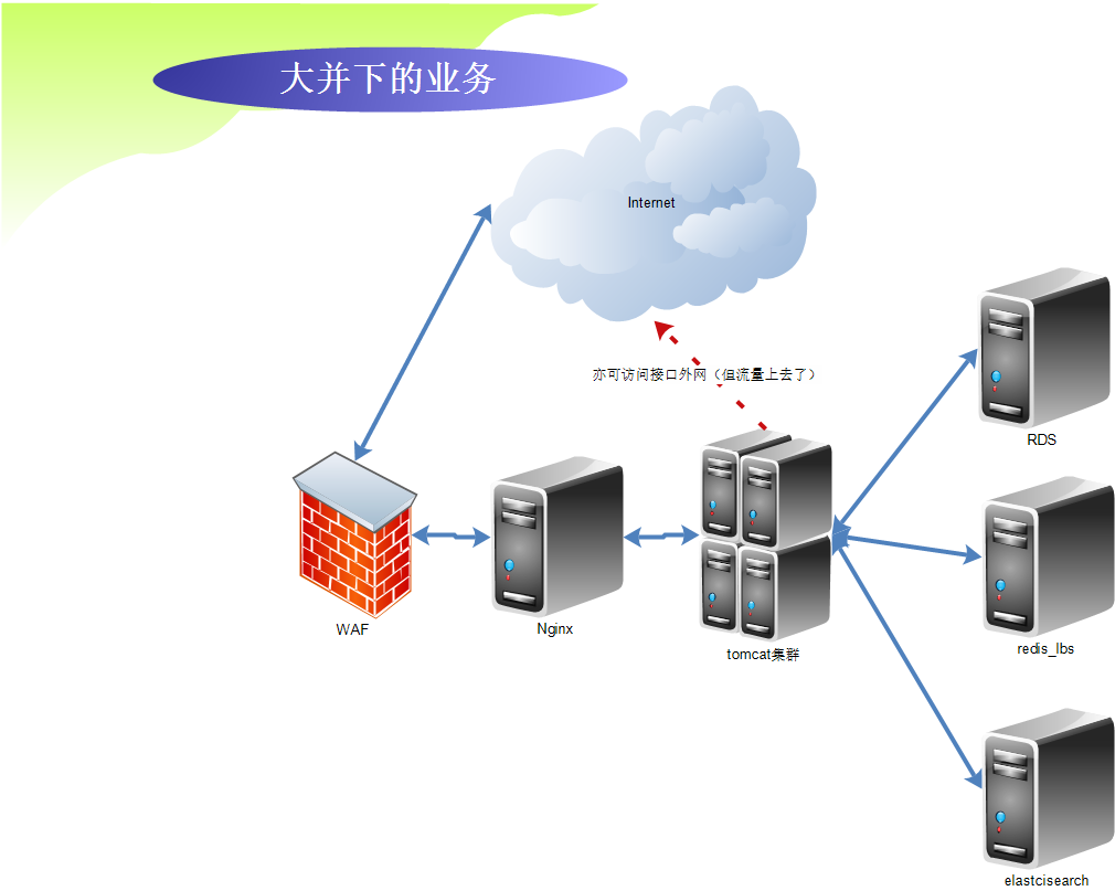 大并发项目中,负载架构肯定少不了负载,分布式.例如一个红包业务.各个层级的流量肯定很大,那这样的话,NG层的流量口要买很大的流量,比如买100M,业务层因为也要访问发红包接口或其它接口,也要买很大的流量.流量其实在云服务中,是一个很大的开支.那这样对于企业来说,其实是可以通过流量转移来解决这个问题.