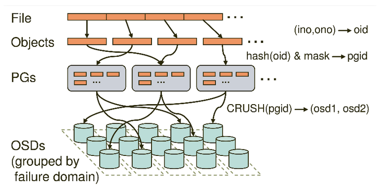 CRUSH(X) -> (osd.1,osd.2.....osd.n)