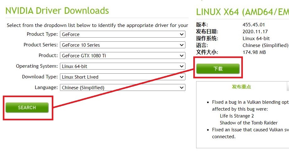 驱动下载https://www.nvidia.com/Download/index.aspx